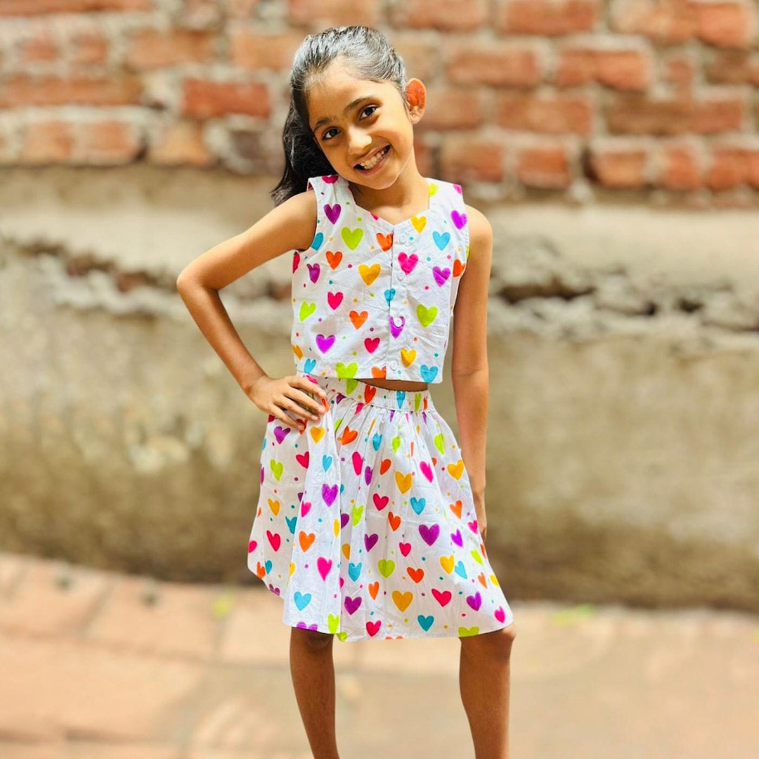 Trendy Hearts Co-ord Set with Skirt – Cotton Fabric